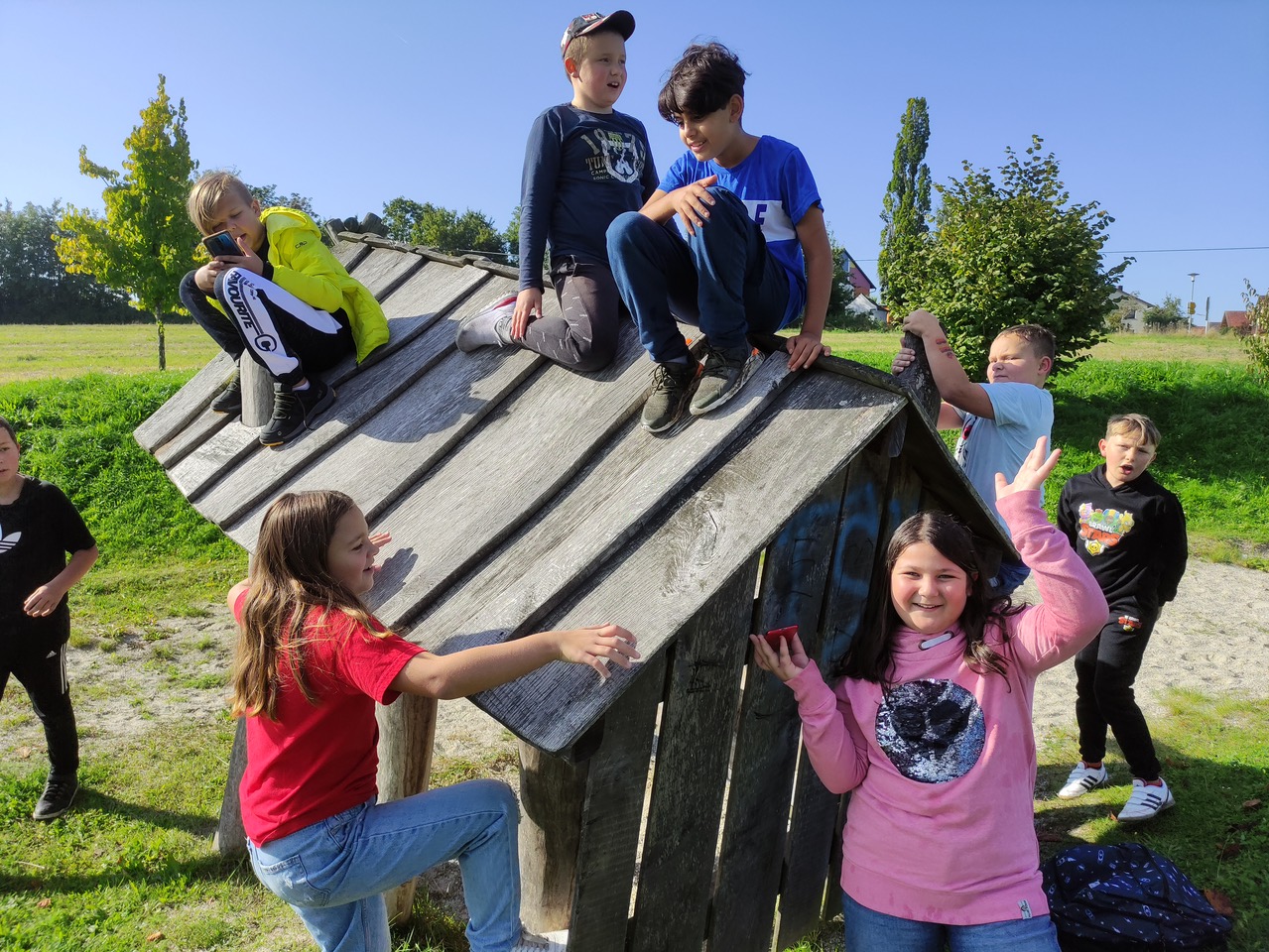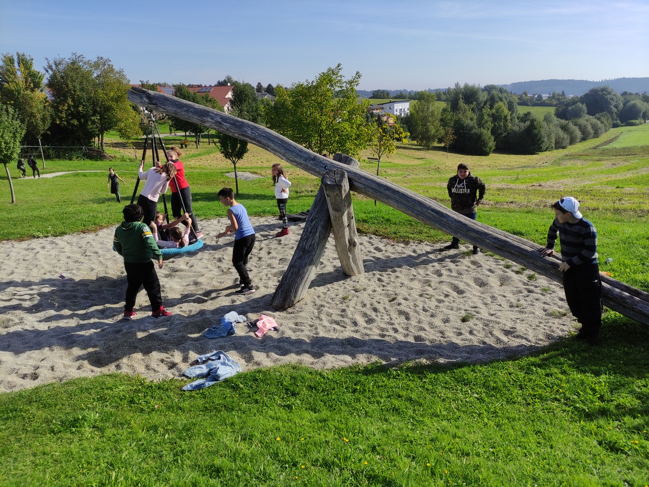 Heute besuchten die fünften Klassen den Spielplatz in Fichtheim - und das natürlich zu Fuß. schließlich war ja WANDER-Tag.