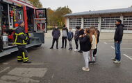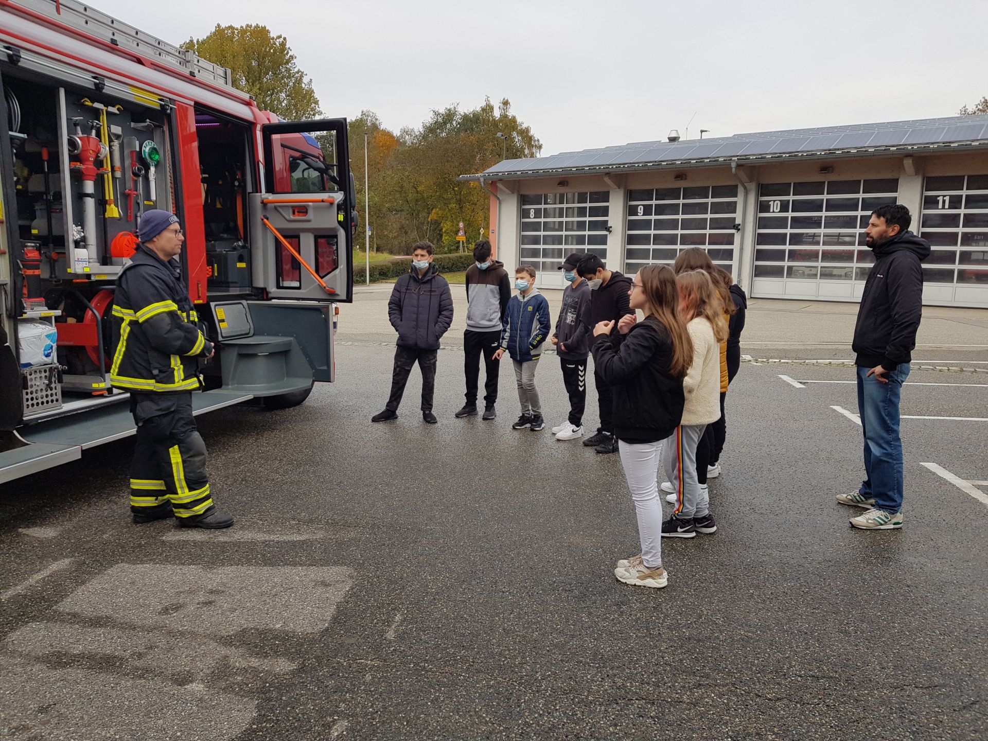 Wer darf überhaupt ein Feuerwehrauto fahren? Wie viel kostet ein Schutzanzug eines Feuerwehrmannes? Wie funktioniert ein Feuerlöscher? Diese und viele weitere Fragen wurden am Dienstagvormittag den Schülerinnen und Schülern der Klasse 7b beim Besuch der Feuerwache Landau beantwortet.