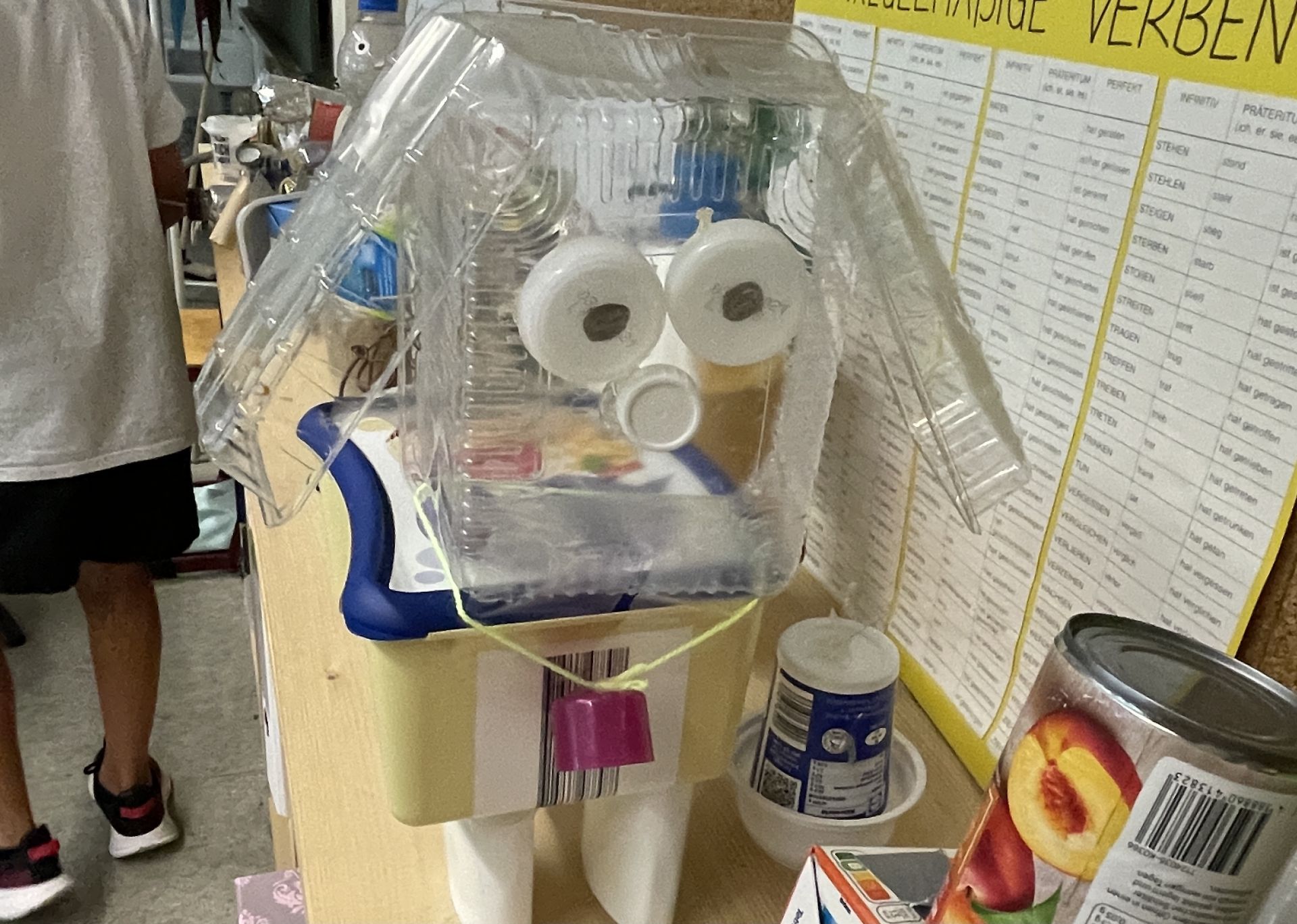 Anschließend erhielt die Klasse im Kunstunterricht die Aufgabe, diesen Müll aufzuwerten. Sie stellten fantasievolle Tierfiguren im Stil der japanischen Künstlerin "Natsumi Tomita" her.