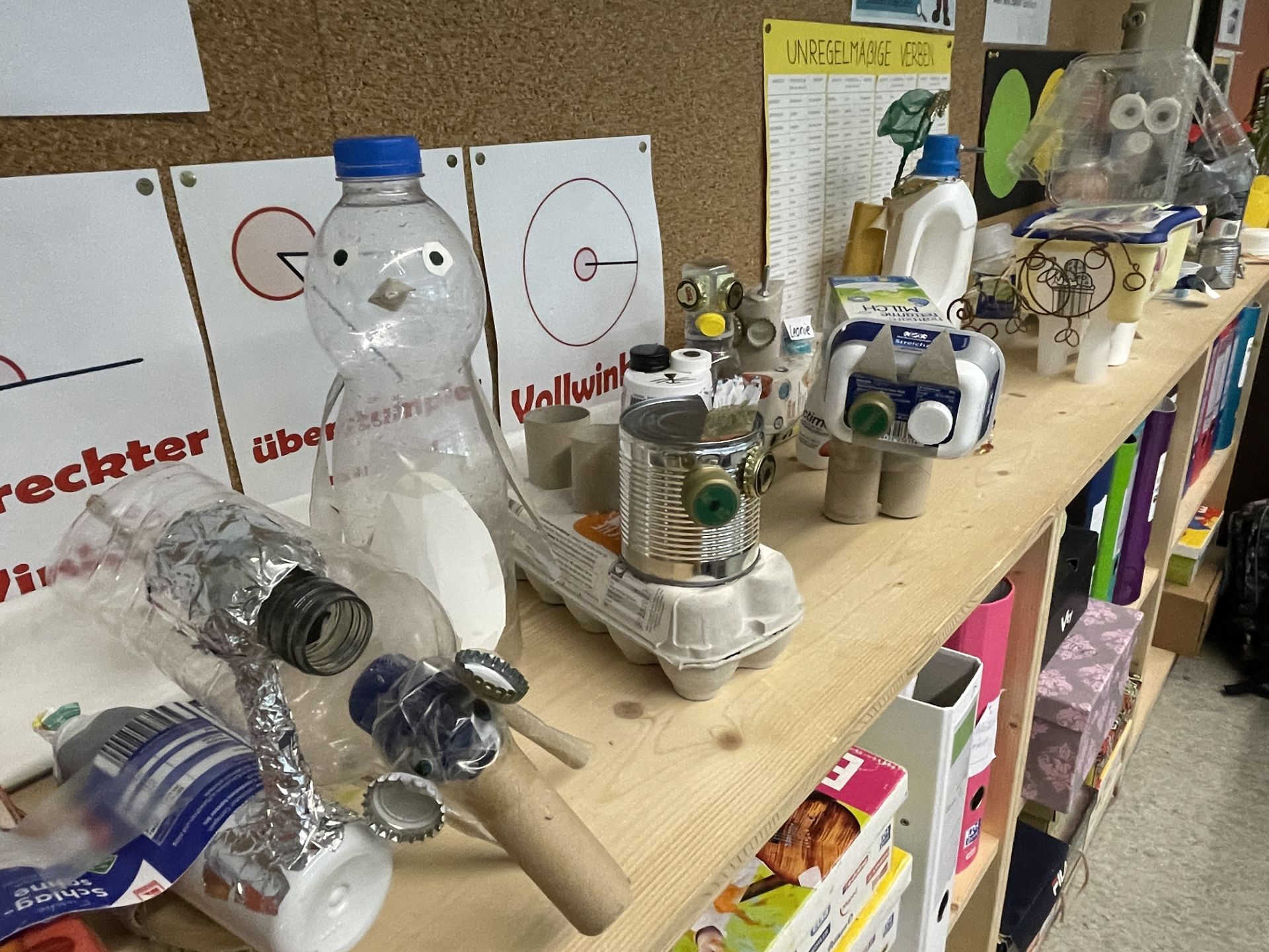 Das Ergebnis: viele verschiedene und bunte Tierfiguren aus Müll."
