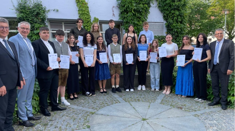 Unsere besten Absolventen waren mit Ihren Eltern und Klassenleitungen am Montag im Landratsamt zu einer Feierstunde eingeladen. Dort erhielten sie aus den Händen des Landrats Werner Bumeder das deswegen so begehrte Landkreisbuch, weil es symbolisch ganz einfach jährlich nur an die Besten vergeben wird. Das steiget natürlich den symbolischen Wert enorm!