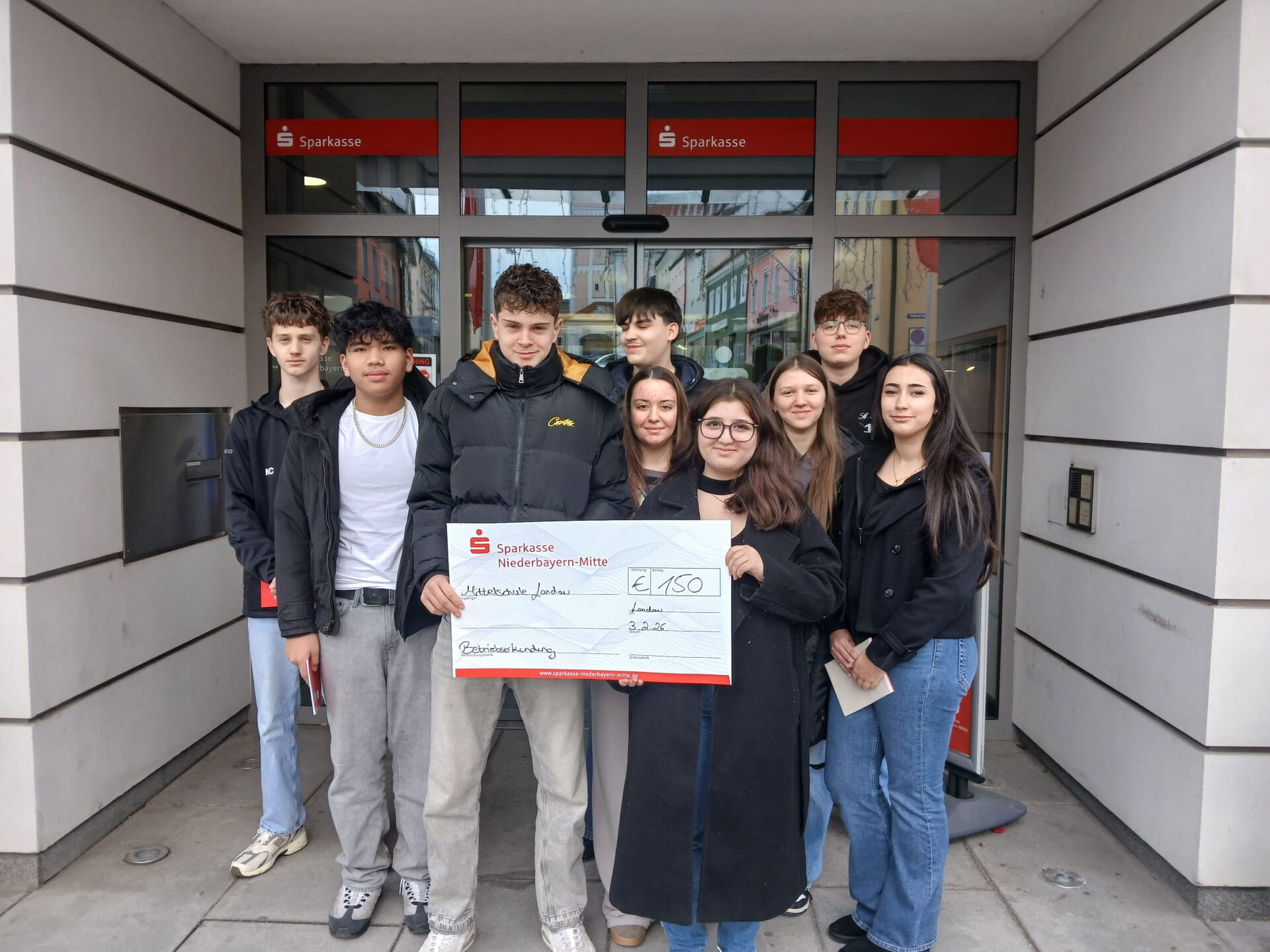 Der Besuch war für die 9c nicht nur lehrreich und abwechslungsreich, sondern endete auch mit einer erfreulichen Überraschung: Die Sparkasse unterstützte die Klasse mit einer Spende von 150 Euro für die Klassenkasse.