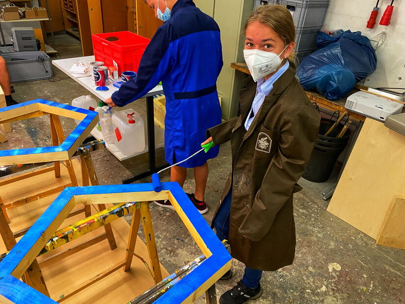 Aha … und genau so einer wird gerade gebaut mit Unterstützung von Herrn Schoreisz und selbstverständlich in den Schulfarben lackiert. Wir sind schon sehr gespannt, wie sich der „Platonische Körper“ so in unserer Aula macht. Das Ziel ist, ihn an einem Seil aufzuhängen.