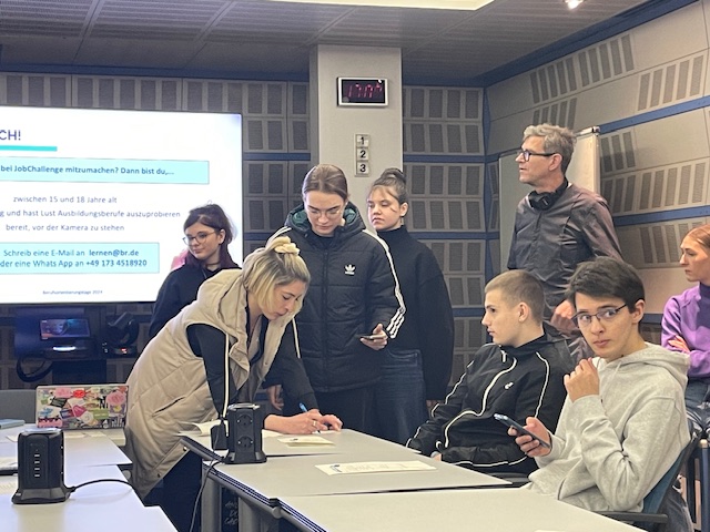 Letzten Mittwoch besuchten wir, die beiden 10. Klassen der MSL, die Berufs-orientierungstage 2024 beim Bayrischen Rundfunk in München. Zuerst hörten wir ein paar interessante Berichte von BR-Mitarbeitern über ihre Berufe und wie sie zum BR kamen. Nach einer kurzen Pause mit Vitamin-Booster (Säfte und frisches Obst) gingen wir mit den für uns zuständigen Mitarbeitern in verschiedene Workshops. Hier musste jeder ran: Interviews über Berufe führen und filmen und Umfragen draußen auf der Straße machen. Mittags konnten wir uns bei Nudeln mit Tomatensoße stärken, bevor es in die zweite Workshop-Runde ging. Jetzt durften wir einen Blick in die Studios der Sender Bayern 3 und Bayern 1 werfen mit den bekannten Radiomoderatoren Susanne Rohrer, Sebastian Winkler und Katja Wunderlich. Wir waren quasi live dabei! Vorgestellt wurde uns auch ein interessantes neues Projekt - die JobChallenge - bei der Jugendliche zwischen 15 und 18 Jahren Ausbildungs-berufe ausprobieren dürfen und dabei eine Challenge erledigen müssen. Natürlich vor der Kamera! Eine ganz witzige Sache – vielleicht auch etwas für DICH!