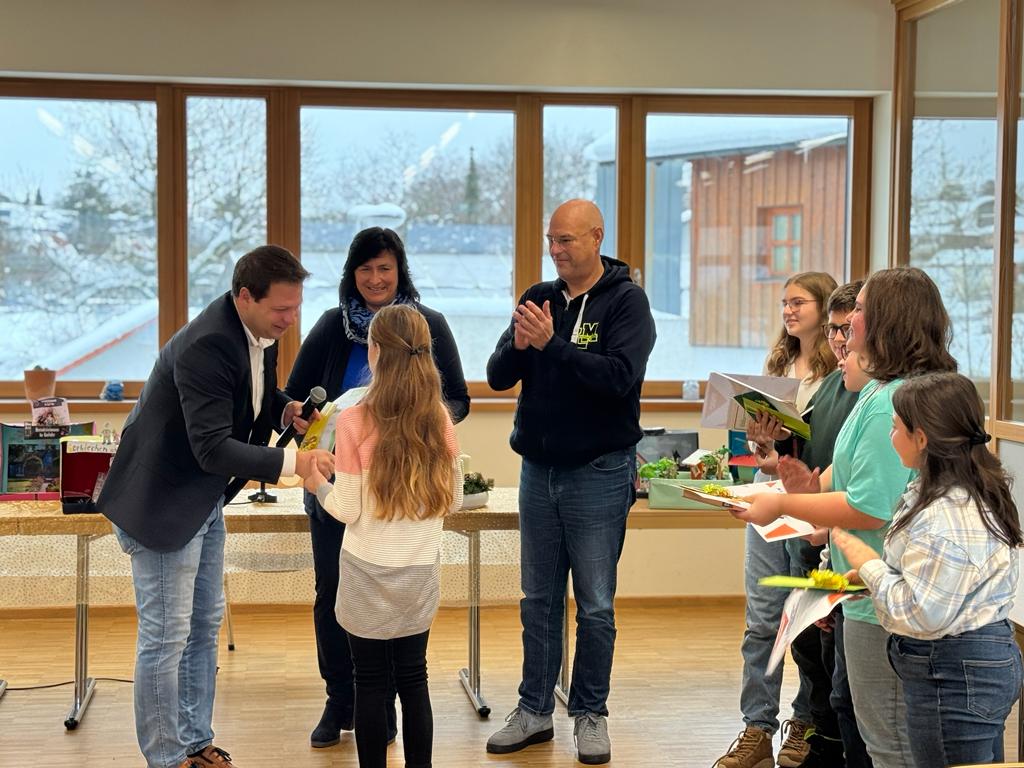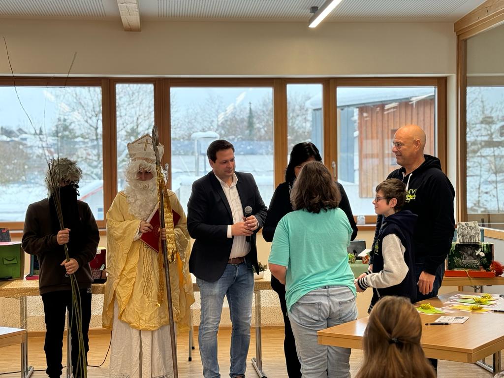 Heute stand - mit einem Tag Verspätung, da gestern der Unterricht witterungsbedingt ausfiel - der Vorlesewettbewerb auf dem Stundenplan unserer Schülerinnen und Schüler der 6. Klassen. Ein wenig nervös waren sie schon unsere 6 VorleserInnen, die bereits in den 3 jeweiligen Klassen ihr Bestes gegeben und sich in einem klasseneigenen Vorentscheid für den heutigen Wettbewerb qualifiziert hatten. Klassenleiter Andrea Schmalhofer und Patrick Pfisterer, die den Tag hervorragend vorbereitet hatten, führten gekonnt und kurzweilig durchs Programm. Leonardo Varadi, Nikolina Kocubij, Eda Sejfulahi, Leonie Balk, Zoe Mitterer und Philip Ecker sowie Rositsa Asenova konnten alle durch ihre Leistungen überzeugen. Somit war es für die Jury, bestehend aus dem 2. Vorsitzenden des Fördervereins und Bürgermeister Thomas Lorenz, Alexandra Plechinger von der Sparkasse, Förderlehrerin Carina Ammerseder, Vorjahressiegerin Luisa Herman und Rektor Ehrenreich, alles andere als leicht, die Plätze zu vergeben. Am Ende setzte sich Leonie Balk durch. Herzlichen Glückwunsch an alle Protagonisten, die sich allesamt über Geschenke des EB und der Sparkasse freuen konnten. Auch der Hl. Nikolaus, der zufällig vorbeikam, lobte die Leistungen der Vorleser ausdrücklich. Da macht Leserziehung Spaß!