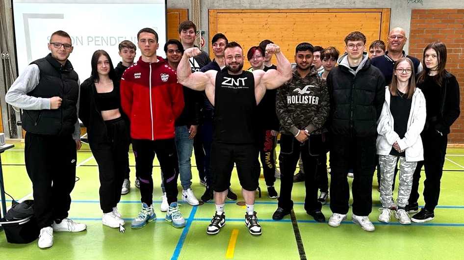 Über eine besondere Aktion durften sich gestern alle 5 Abschlussklassen der 9. Jahrgangstufe freuen. Die MSL konnte den bekannten Bodybuilder und Coach Simon Pendelin für einen Motivationsvortrag gewinnen, bei dem es allerdings um viel mehr als Gewichte stemmen und Hanteln, um Bodybuilding und Sport, ging. Der Hintergrund: In Kürze beginnen die Abschlussprüfungen und gerade jetzt, wo endlich der Frühling kommt, das Wetter schön wird, ziehen es viele Beteiligte vor, die Zeit in der Sonne zu genießen, sich mit Freunden draußen zu treffen und zu chillen, als zu lernen. Stattdessen aber ist es leider dringend notwendig, sich zu Hause an den Schreibtisch zu setzen und dort zu büffeln. Das fällt manchen nicht (immer) leicht. Simon Pendelin erzählte von seinem Tagesablauf und verblüffte alle Zuhörer damit, wie genau strukturiert, diszipliniert und organisiert er seinen Sport betreibt. Er richtet eigentlich sein ganzes Leben darauf aus. Ernährung, Trinken, Schlafen … und natürlich viel Training. Jeden Tag, jeden einzelnen Tag mindestens 2 Stunden! „Natürlich habe auch ich nicht immer Lust zum Hanteln stemmen, aber ich habe mir ein Ziel gesetzt und mir dafür einen genauen Plan erstellt. Diesen setze ich konsequent um, auch wenn es nicht immer leicht fällt!“ „Euer Ziel ist jetzt der Quali, die Krönung von 9 Jahren Schulzeit“, so führt der Coach aus. „Erstellt euch einen Lernplan und setzt diesen um, ohne ihn in Frage zu stellen!“, fordert Pendelin die Jugendlichen auf. Der Lohn der ganzen Arbeit und der Anstrengung sei dann ein bestandener Abschluss, auf den man stolz sein könne. Wir bedanken uns sehr bei unserem Förderverein, der auch dieses besondere Event finanzierte.