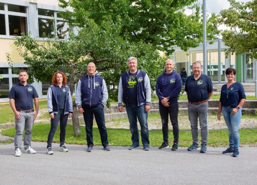 von links: Franz Straßer trägt das Poloshirt, Monika Kindler mit Polo und urban zip hoodie, Christian Ehrenreich mit urban zip hoodie, Hans Voglmeier mit T-Shirt/College Jacke, Markus Dorfner mit Hoodie, Rainer Scholz (Poloshirt) und Tanja Huber mit Aufnähpatch