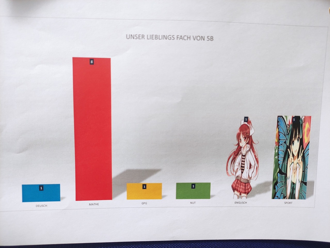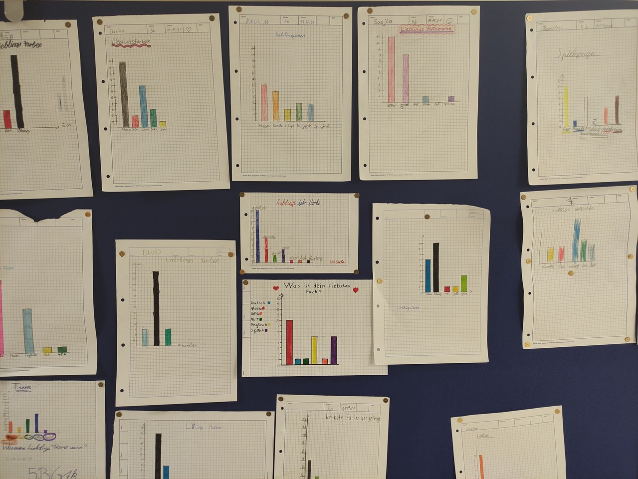 Solche Fragen stellte sich die 5b gegenseitig - und stellte die Ergebnisse als Diagramme dar.