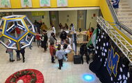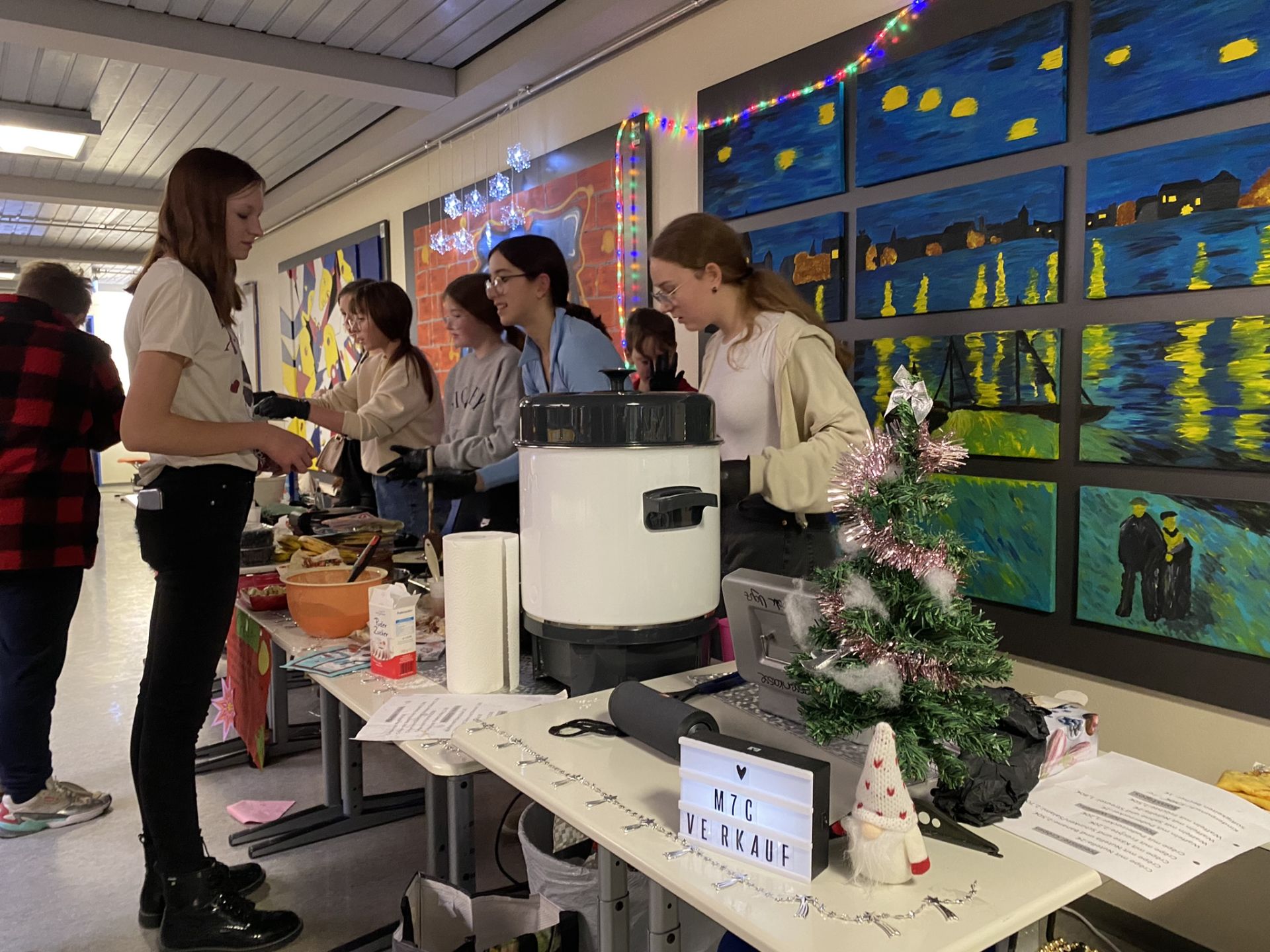 Weihnachtliche Pause: Die ganze Aula voller Stände, Schüler und Eltern
