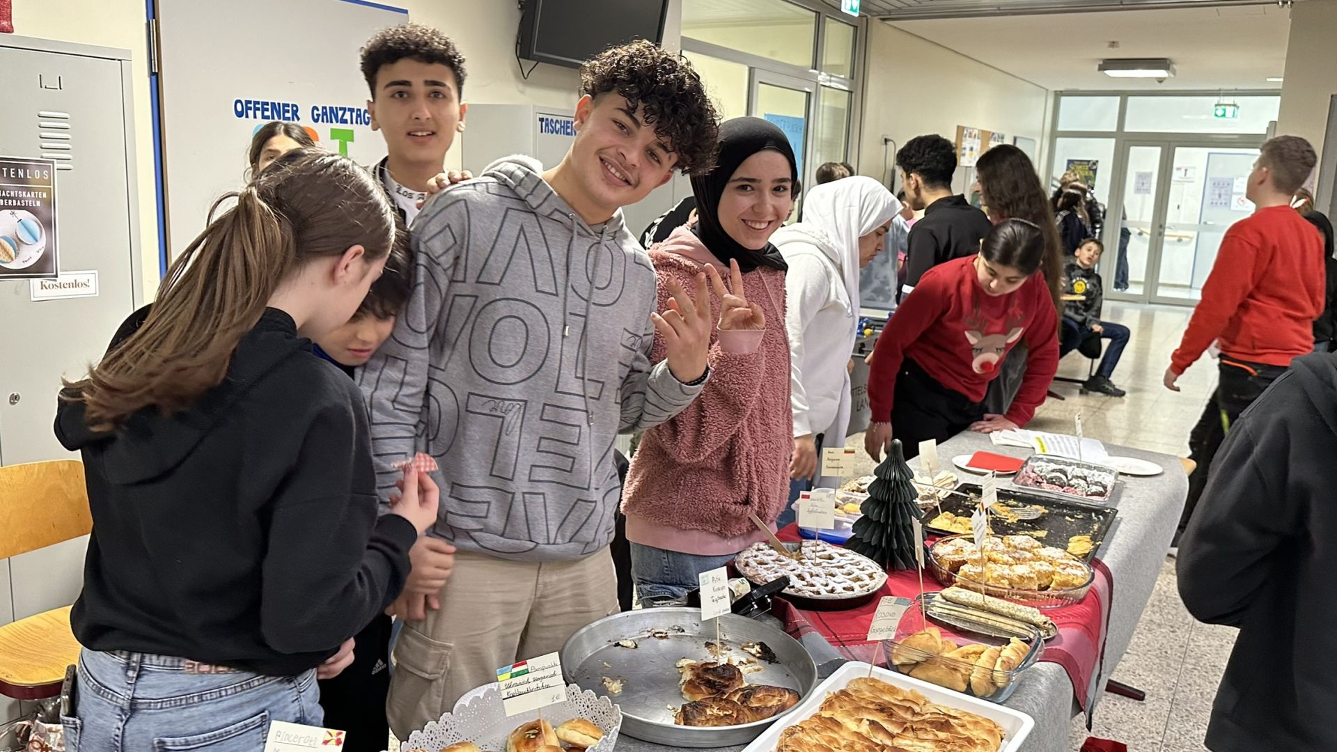 Heute war so richtig was los in der Aula, denn wir durften gemeinsam die traditionelle Weihnachtliche Pause feiern. Jede Klasse hatte einen Stand vorbreitet, sich lange Zeit und mit viel Vorfreude für den heutigen Tag gerüstet. Das Technik Team ließ diverse weihnachtliche Klänge hören. So freuten sich nicht nur unsere SchülerInnen und Lehrkräfte, sondern auch eine ganze Reihe von Eltern über das umfangreiche Angebot: Von Weihnachtsgebäck, Fruchtspießen bis hin zu Weihnachtsdeko und im Technikunterricht hergestellten Artikeln … die Klassenstände hatten einiges zu bieten. Ein Highlight waren aber sicherlich die Aktivstationen. So konnte man etwa in der Turnhalle einen weihnachtlichen Elfenparcour durchlaufen oder bei der M10a lustige adventliche Bilder an der Fotobox von sich und seinen Freunden schießen lassen. Es freut uns ganz besonders, dass wir in diesem Jahr erstmals die 4. Klassen der GS Landau zu diesem Event begrüßen durften! Zugegeben: Allzu „besinnlich“ ging es nicht zu und von der „staaden Zeit“ war weit und breit nichts zu erkennen. Aber Gemeinschaft zu fühlen – das ist doch auch ein wichtiger weihnachtlicher Aspekt, oder?