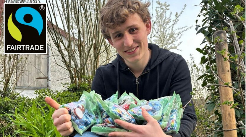 Lustige Ostereieraktion der SMV: Fairtrade Eier auf dem Pausenhof