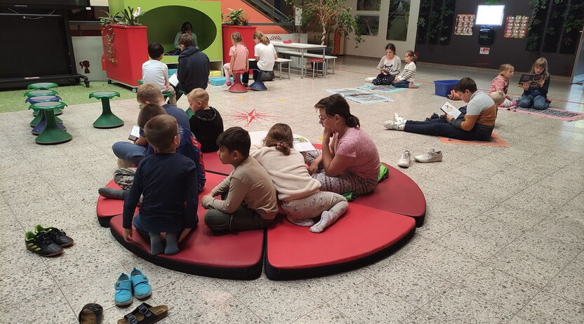 Lese-Kooperation mit der 1. Klasse: 5. Klässler als "große" Lesepaten für ABC - Schützen